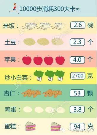 正兒八經(jīng)的走上一萬步,一般能消耗240-300大卡的熱量,大概就像下面這張圖中所對比的那樣。