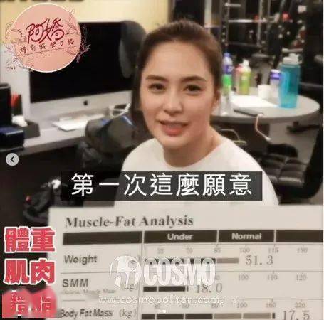 乍一看,51.3kg的體重在女明星中確實不算瘦,但你們再往下看,她的體脂只有 17.5。